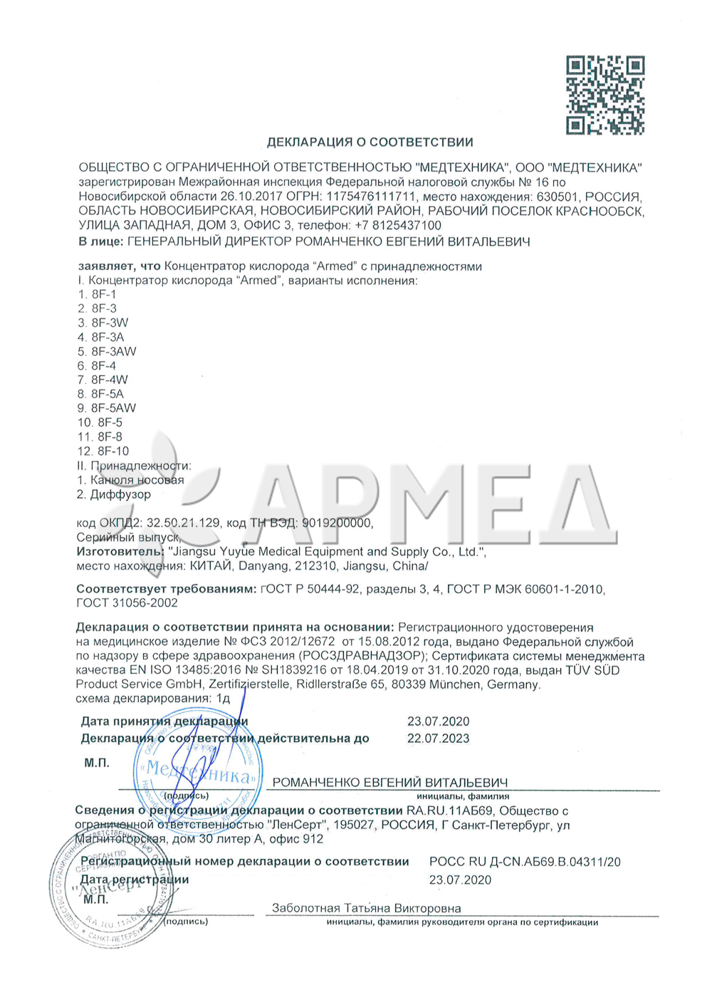 Концентратор кислорода Армед 7F-8L