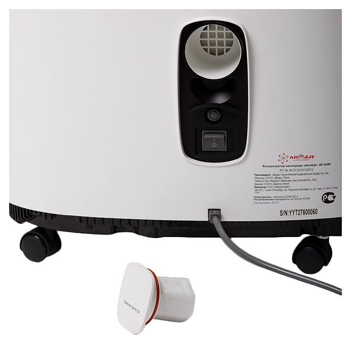Концентратор кислорода Армед 8F-3A используется в медицинских, лечебно-профилактических учреждениях и домашних условиях для выделения кислорода из окружаюшего воздуха, профилактики и лечения бронхиальной астмы, обструктивного бронхита, острых респираторных инфекций и других заболеваний дыхательных путей, а также для ингаляций с лекарственными препаратами, приготовления кислородных коктейлей и сеансов ароматерапии. Принцип работы: абсорбция цеолитом азота из воздуха при прохождении воздушной смеси сквозь молекулярное решето, фильтрация и увлажнение с получением высококонцентрированной кислородной смеси на выходе. Модель оснащена регулятором потока, расходомером, кабелем питания с вилкой, панелью управления с информативным цифровым дисплеем и светодиодными лампами индикации. Корпус изготовлен из ударопрочного пластика. В комплект поставки входят диффузор, 2 кислородные канюли со шлангами различной длины, набор для ингаляций и пульт управления. Особенности: