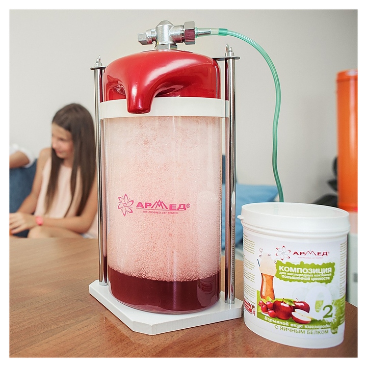 Кислородный коктейлер Армед LDPE BAG используется вместе с любыми моделями кислородных концентраторов в кафе, барах, кинотеатрах, фитнес-клубах, детских учреждениях и других местах массового общественного пребывания для приготовления кислородных коктейлей. Объемный резервуар оснащен легкосъемной крышкой с надежным металлическим фиксатором, трубкой, отверстием для присоединения кислородного шланга, регулирующим подачу кислорода краном и носиком для излива готового к употреблению продукта. Корпус стильного яркого дизайна выполнен из безопасного прочного полимера. Характеристики: