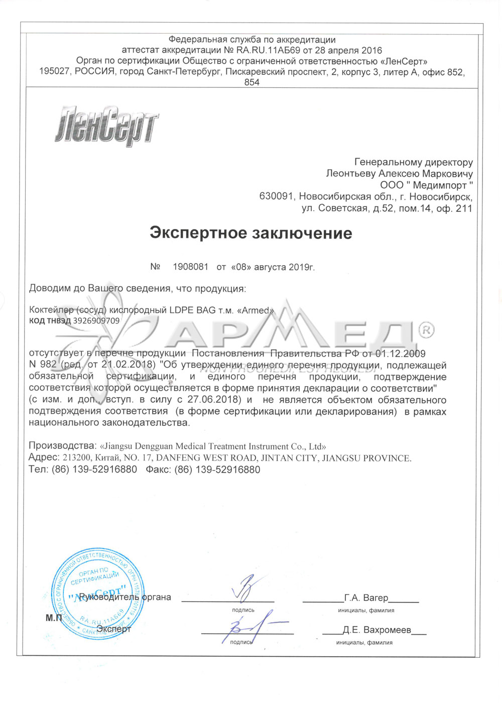 Коктейлер кислородный Армед LDPE BAG