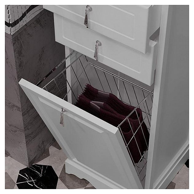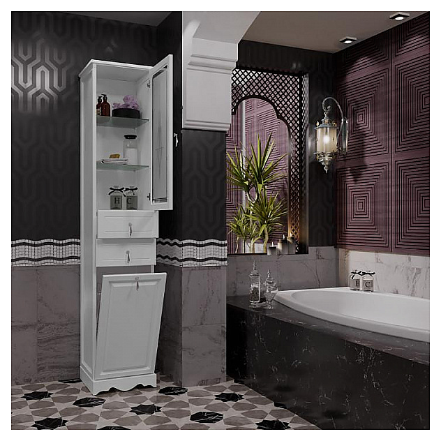 Шкаф-пенал OPADIRIS Тибет Z0000012648 выполнен в классическом, лаконичном стиле и отлично дополнит интерьер любой ванной комнаты. Модель оснащена распашной фасад-дверцей сверху, за которой находятся полки, 2 небольшими выдвижными ящиками, где удобно хранить необходимые в ванной комнате принадлежности и элементами декора и откидной фасад-створкой с бельевой корзиной в нижней части пенала. Напольная конструкция обеспечивает легкий монтаж и не требует специального ремонта в помещении. Корпус изделия выполнен из массива бука и МДФ, материал боковых сторон - массив бука и МДФ со шпоном. Пенал может использоваться в составе гарнитура для ванной комнаты серии Тибет. Особенности: