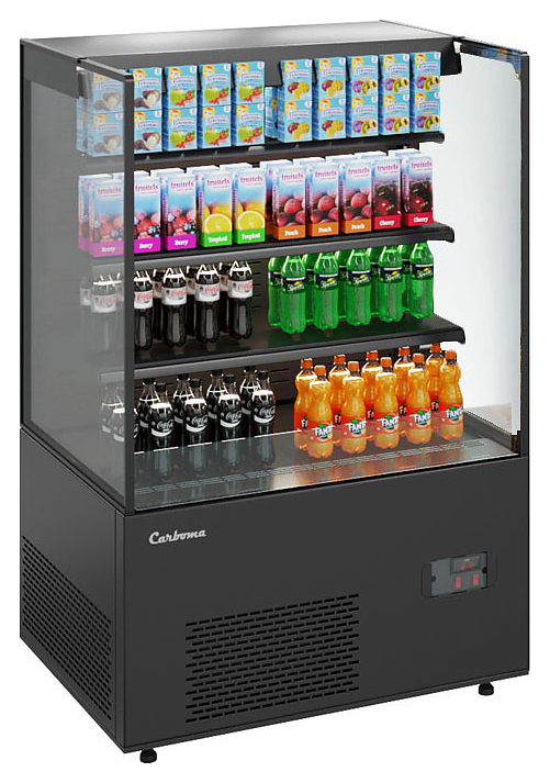 Открытая кондитерская витрина Carboma KC71-110 VV 1,2-2 COSMO используется на предприятиях общественного питания и торговли для демонстрации, охлаждения и кратковременного хранения напитков, тортов, пирожных и других кондитерских изделий и гастрономических товаров. Модель оснащена 3 регулируемыми по уровню металлическими полками со встроенными ценникодержателями и регулируемыми ножками высотой от 30 до 50 мм. Корпус выполнен из стали и пластика, термоизоляция корпуса - из пенополиуретана, остекление - из структурного стеклопакета. Особенности: