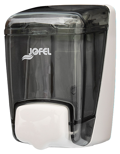 Дозатор Jofel AC84000 серии Azur используется в туалетных комнатах кафе, баров, ресторанов, торговых центров и офисов. Прибор оснащен эргономичной нажимной кнопкой. Основание и кнопка выполнены из высококачественного ABS-пластика, резервуар и крышка - из дымчатого SAN. В комплект поставки входят черный ключ с 2 выступами, 3 дюбеля и 3 винта для крепления на стену. Особенности: