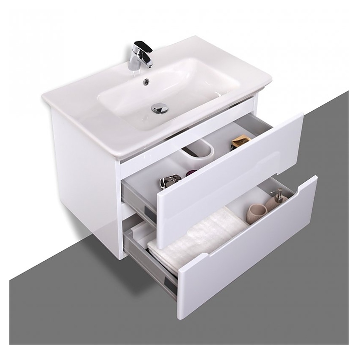 Тумба под раковину BelBagno TORINO-800-2C-SO-RW выполнена в современном стиле. Модель оснащена 2 выдвижными ящиками с доводчиками и врезными ручками в плоскости фасада. Тумба приобретается только в комплекте с раковиной TOR-800-CB-LVB. Смеситель и сифон в комплект поставки не входят и приобретаются отдельно. Дополнительные характеристики: