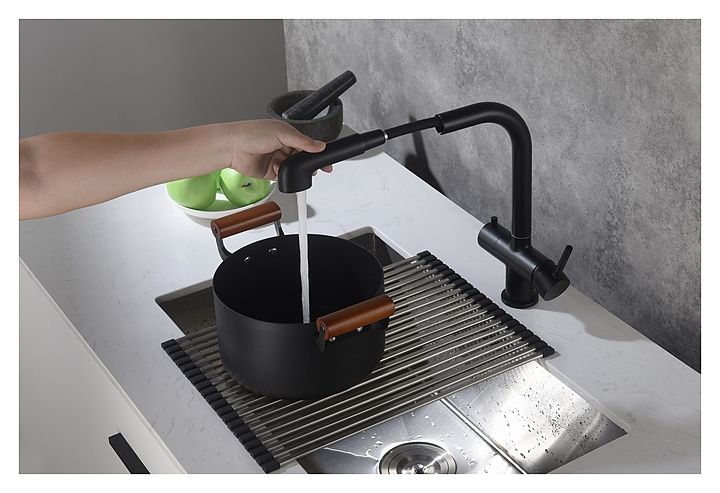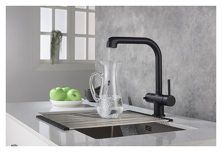 Смеситель для кухни TIMO Saona 2346/03FL с подключением фильтра и выдвижной лейкой, черный