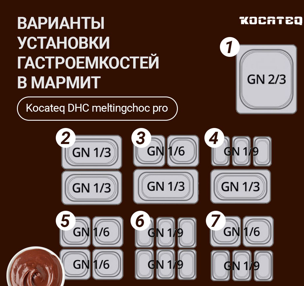 Температор Kocateq DHC meltingchoc pro предназначен для плавления и поддержания в горячем состоянии шоколада и глазури на предприятиях общественного питания и торговли. Модель оснащена 1 ванной под 2 гастроемкости, электронным термостатом для установки температуры, термощупом и нагреватеольными пластинами, расположенными по бокам и на дне камеры. Корпус выполнен из нержавеющей стали AISI 201, нагревательная пластина - из алюминия. Особенности:
