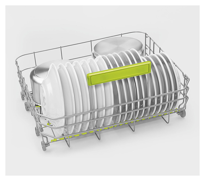 Опция FlexiZone - опция половинной загрузки - позволяет мыть с меньшей загрузкой, экономя электроэнергию, воду и время без ограничений на размещение посуды