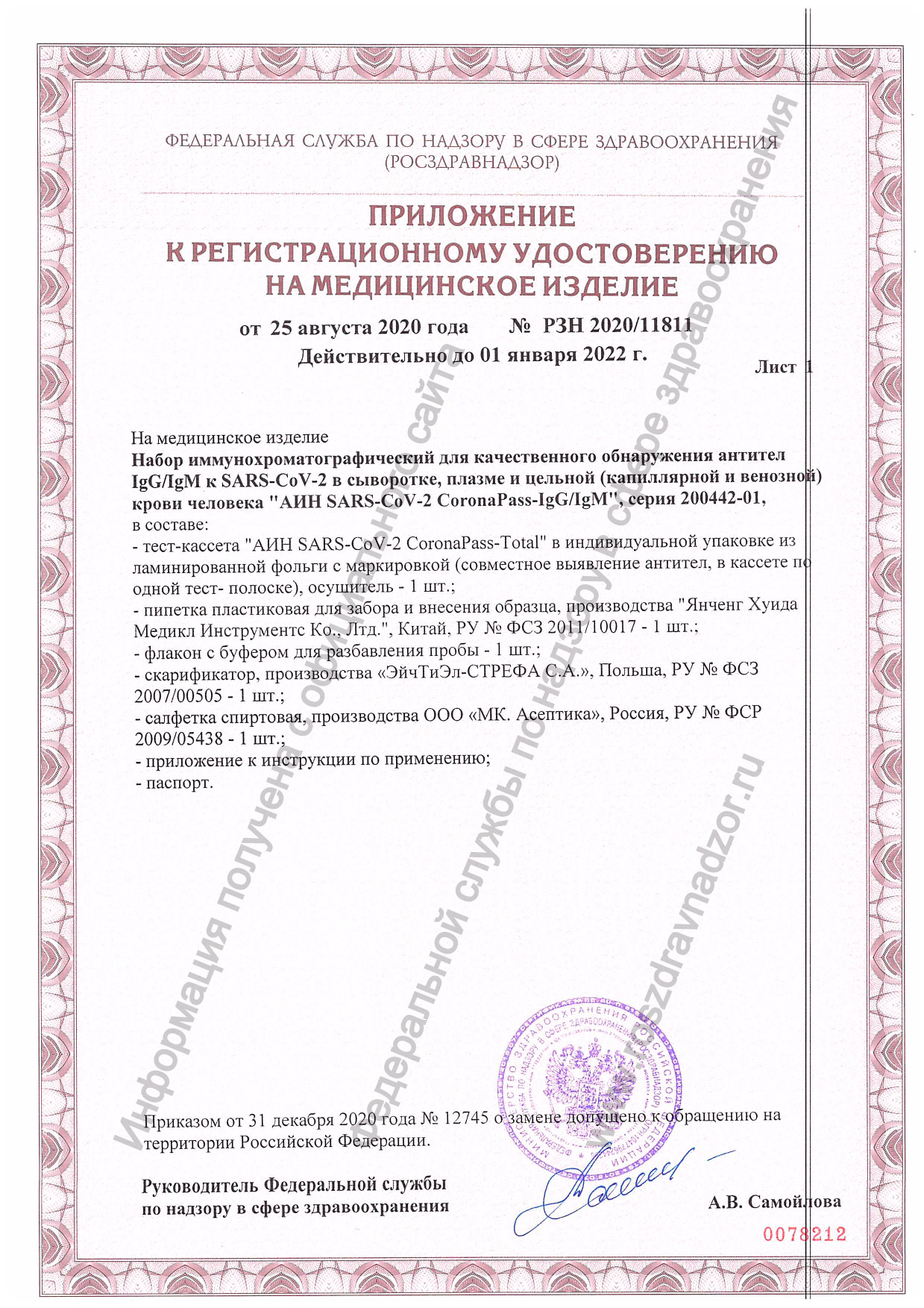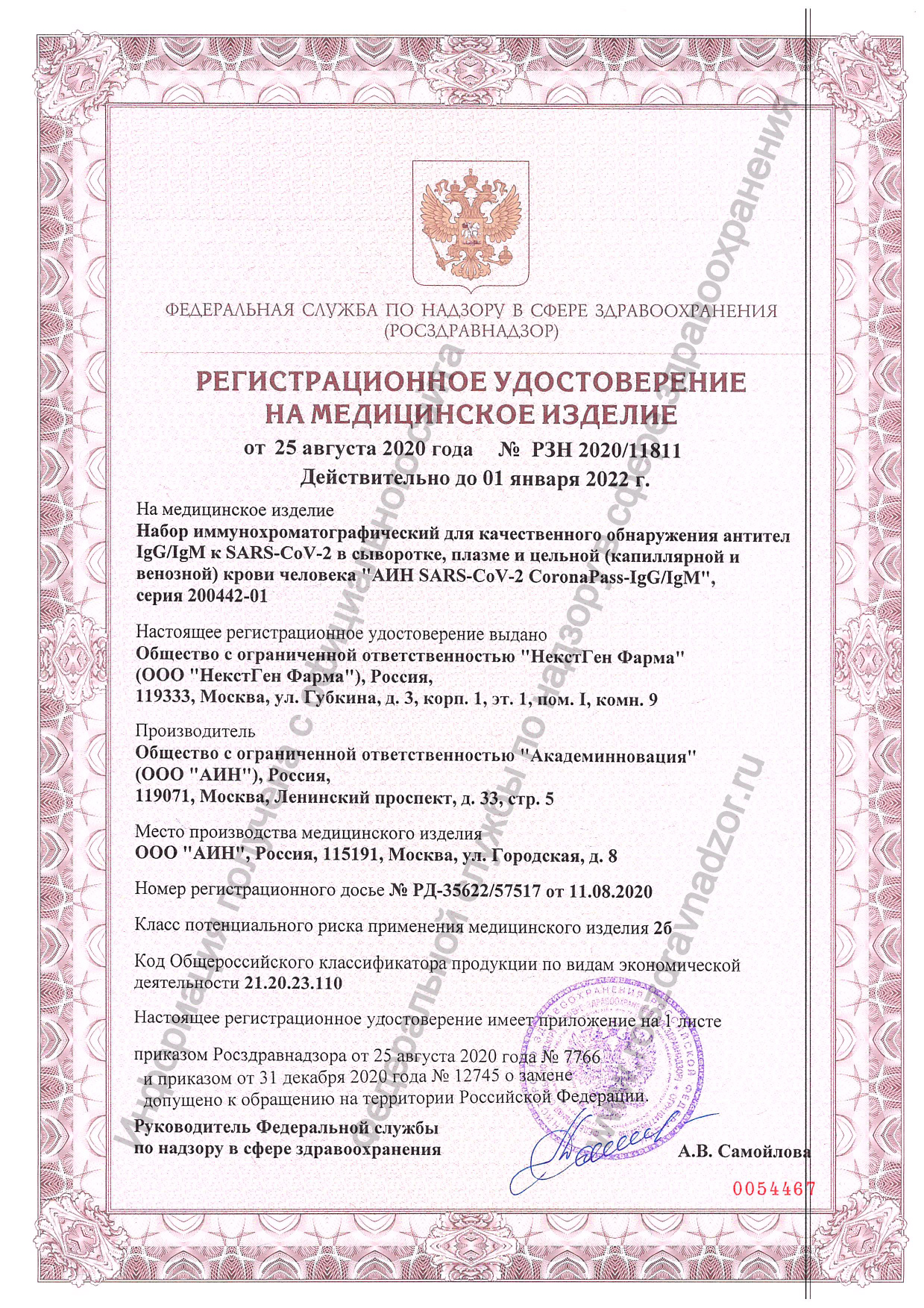 Экспресс-тест на COVID-19 и наличие антител АИН SARS-CoV-2 CoronaPass-IgG/IgM