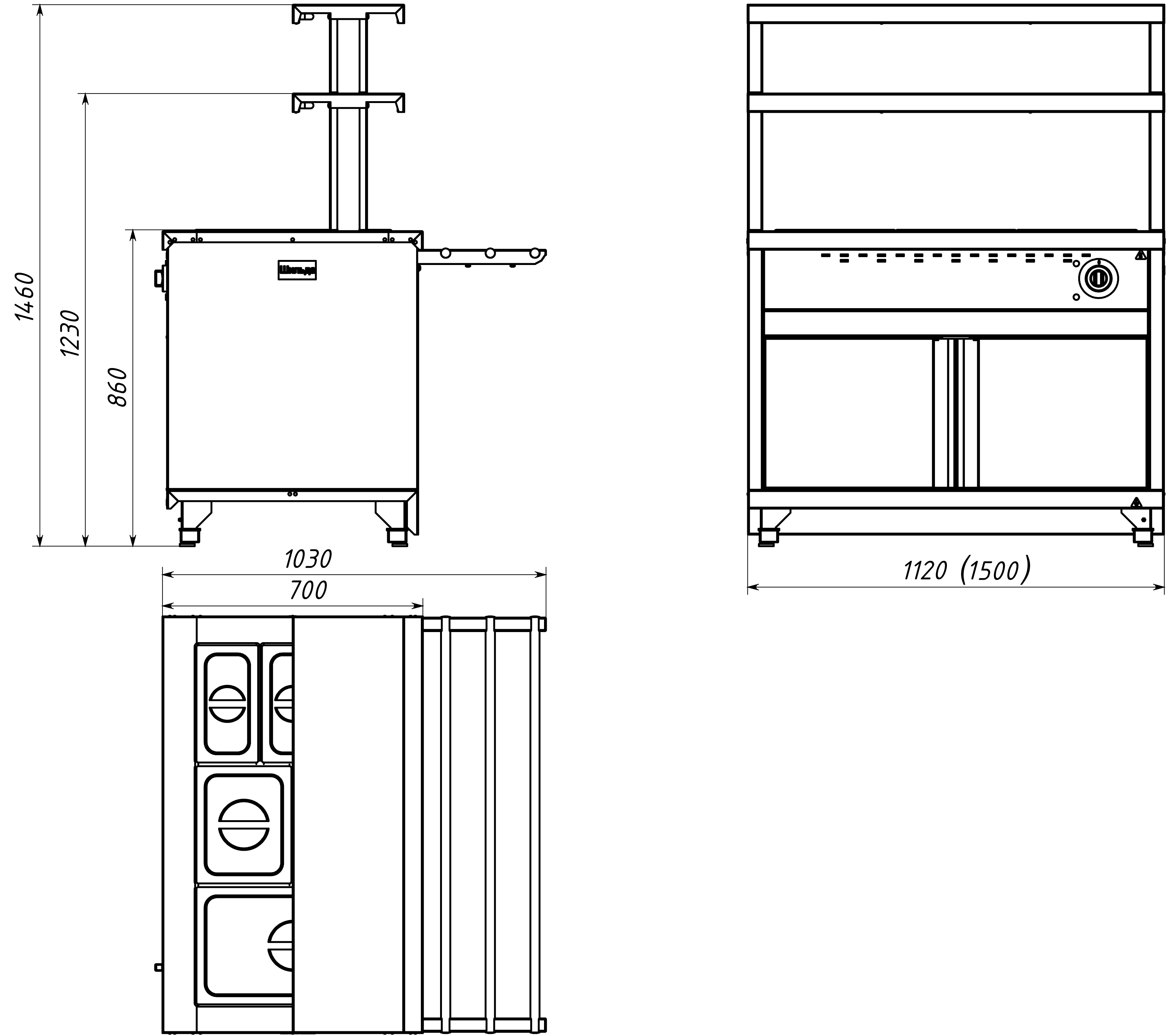 Мармит Gabino MM2V-15/7 используется в составе линии раздачи Gabino Riga для демонстрации и кратковременного хранения готовых блюд, продуктов питания, напитков и посуды на предприятиях общественного питания и торговли. Модель оснащена терморегулятором, 2-ярусной полкой с подсветкой, набором гастроёмкостей, нейтральным шкафом с распашными дверцами. Корпус выполнен из нержавеющей стали. Особенности: