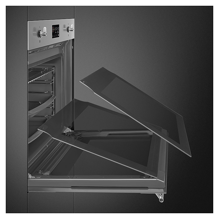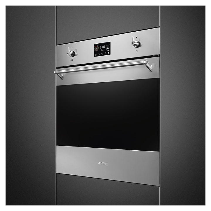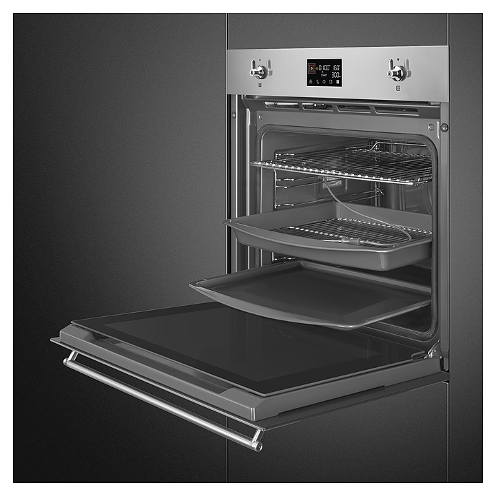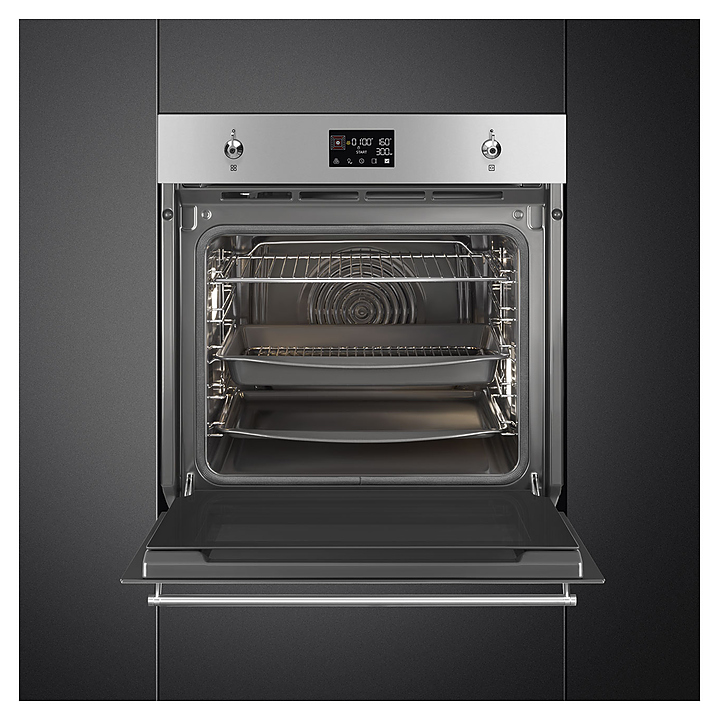 Духовой шкаф SMEG SOP6302TXсерии Classica предназначен для приготовления пищи в домашних условиях. Модель оснащена LСD-дисплеем с сенсорным управлением и поворотными переключателями. Корпус выполнен из матовой нержавеющей стали с обработкой против отпечатков пальцев, дверца - из стекла Eclipse с 2 горизонтальными полосками.