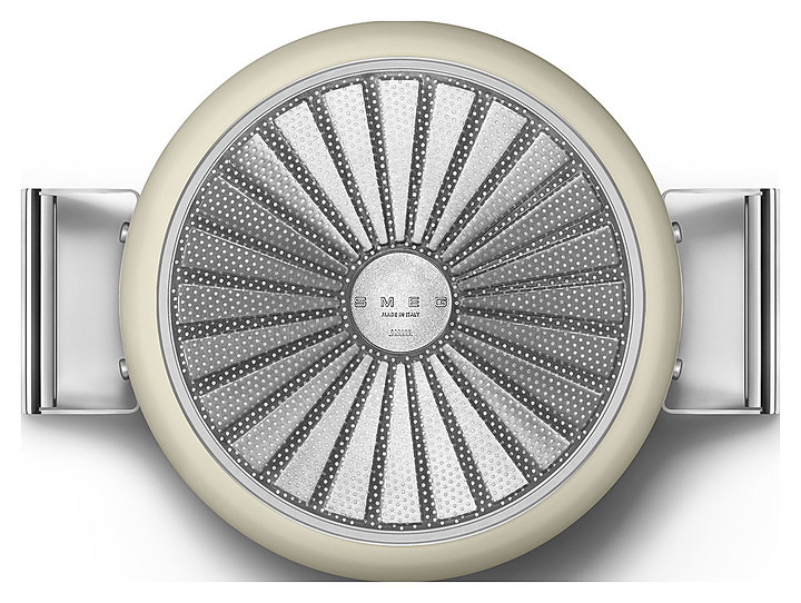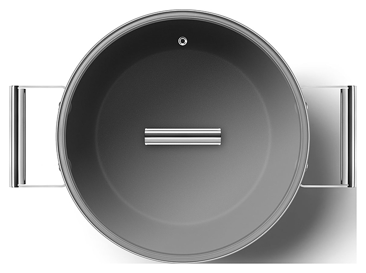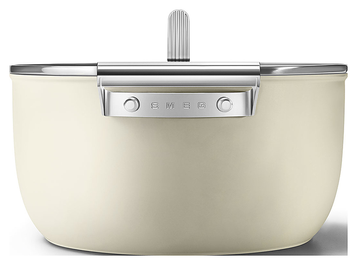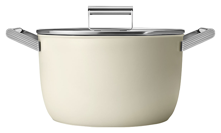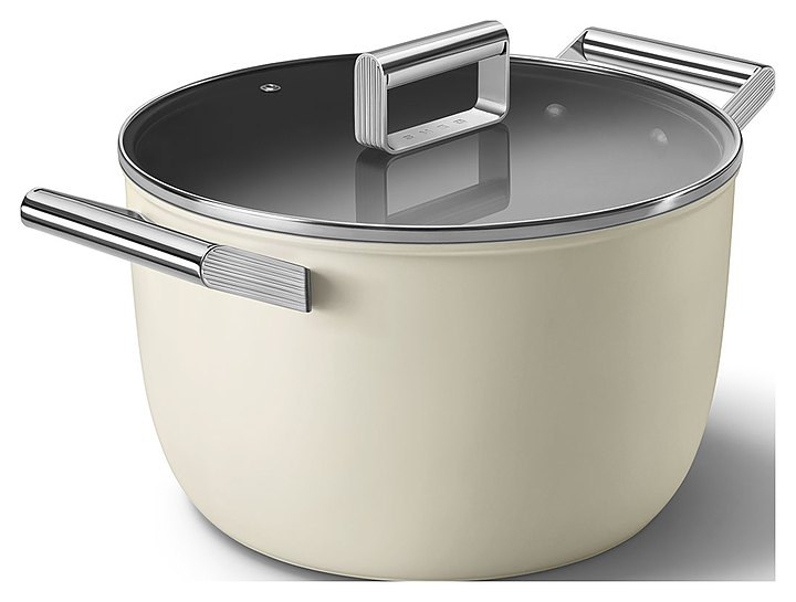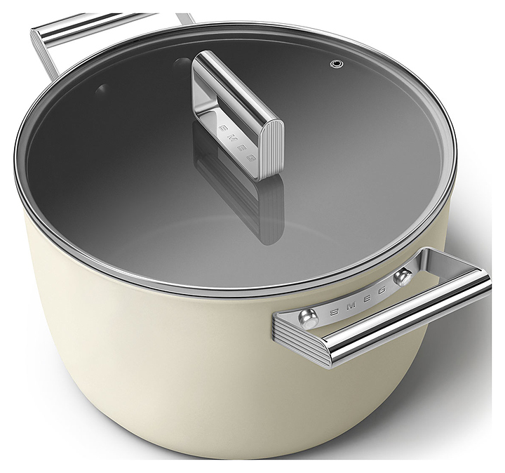 Кастрюля SMEG CKFC2611CRM используется на предприятиях общественного питания и частных домах для приготовления широкого спектра блюд. Модель выполнена в стиле 50-х годов. Корпус выполнен из алюминия холодной ковки, дно - из нержавеющей стали, крышка - из закаленного стекла с ободком из нержавеющей стали, ручка крышки и боковые ручки - из полированной нержавеющей стали. В комплект поставки входит крышка. Особенности: