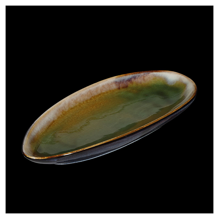 Блюдо Corone Verde HL497090 предназначено для профессионального использования в ресторанах. Модель имеет овальную форму. Посуда изготавливается из профессионального фарфора с покрытием из эффектарной глазури, которая наносится и смешивается вручную, что обеспечивает индивидуальный декор и оттенок каждого изделия. Особенности: