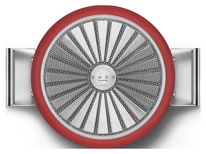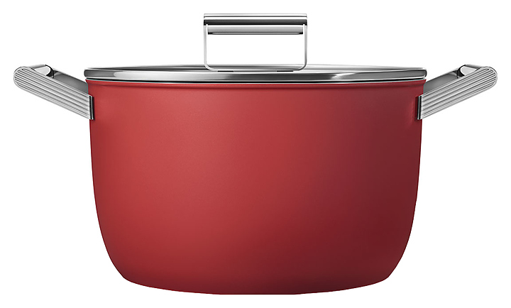 Кастрюля SMEG CKFC2611RDM используется на предприятиях общественного питания и частных домах для приготовления широкого спектра блюд. Модель выполнена в стиле 50-х годов. Корпус выполнен из алюминия холодной ковки, дно - из нержавеющей стали, крышка - из закаленного стекла с ободком из нержавеющей стали, ручка крышки и боковые ручки - из полированной нержавеющей стали. В комплект поставки входит крышка. Особенности: