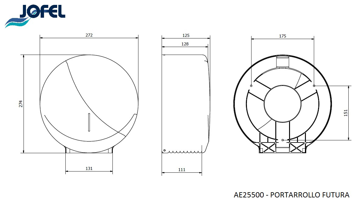 Диспенсер Jofel AE25500 серии Futura используется в туалетных комнатах кафе, баров, ресторанов, торговых центров и офисов для гигиеничного размещения и дозированной подачи туалетной бумаги. Модель оснащена смотровым окном для контроля расхода. Корпус выполнен из блестящей нержавеющей стали AISI 304 толщиной 0,8 мм, основание - из серого ABS-пластика. В комплект поставки входят ключ из нержавеющей стали с 2 выступами, 3 дюбеля и 3 винта для крепления на стену. Особенности: