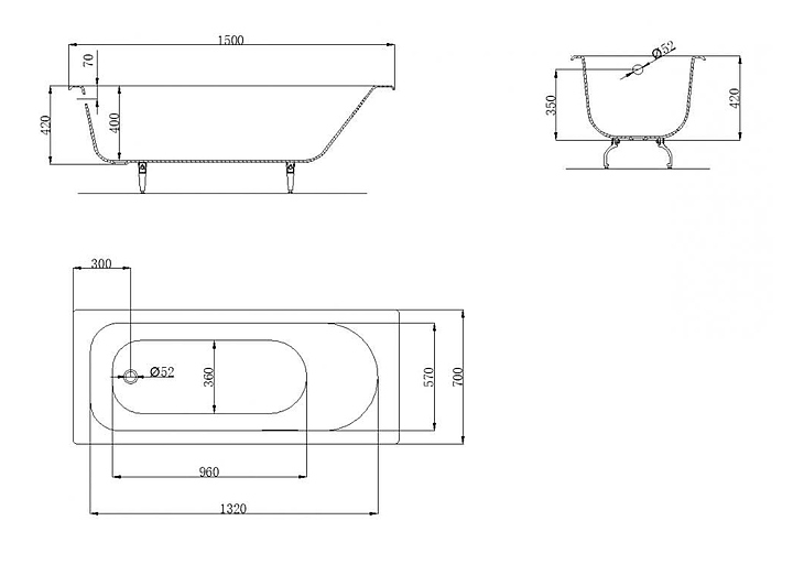 Ванна OWL Роксен OWLIB191100 б/п 150х70 см, чугун