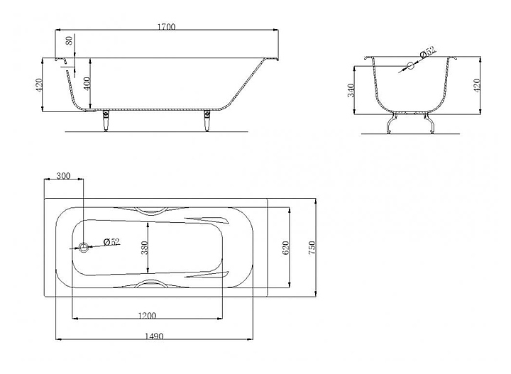 Ванна OWL Бьёрн OWLIB191107 б/п 170х75 см, чугун