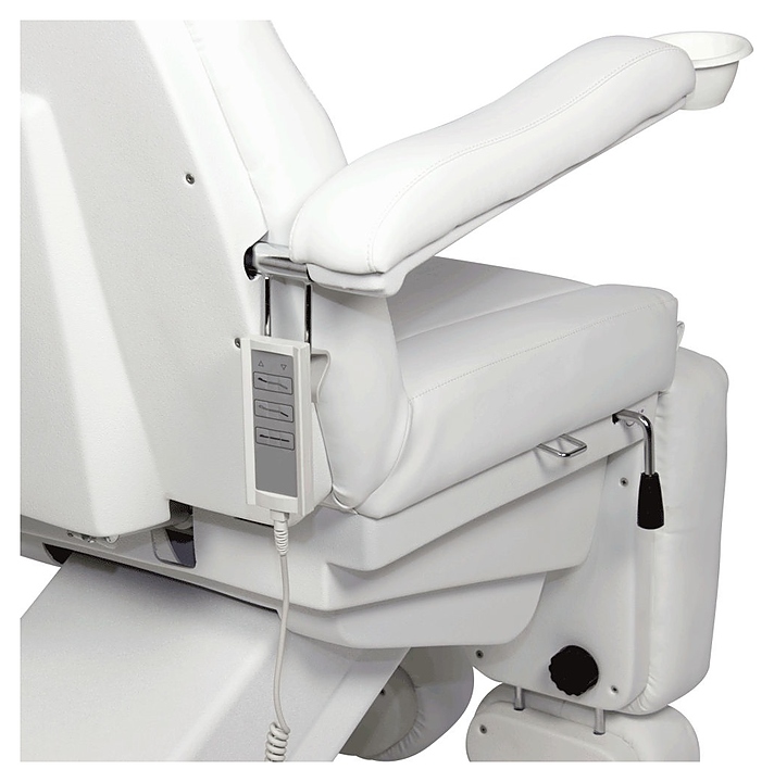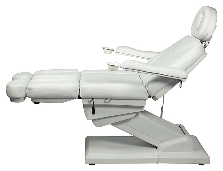 Педикюрное кресло Мэдисон&Co МД-848-3А предназначено для комфортного размещения клиента при проведения процедур маникюра, педикюра, спа-процедур, косметического и лечебного массажа в салонах красоты и косметологических центрах. Модель оснащена устойчивым основанием на подпятниках, 3 электроприводами, удобным ложементом с мягкими сиденьем, спинкой, выдвижным подголовником с отверстием для лица и съемной подушкой, ножными подушками с выдвижными секциями для стоп и откидными съемными подлокотниками со съемными подстаканниками. Обивка выполнена из качественной экокожи, каркас – из металла с антикоррозийным покрытием, наполнитель – эластичный пенополиуретан. В комплект поставки входит пульт управления. Особенности: