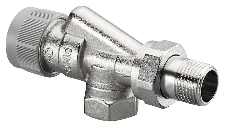 Вентиль термостатический осевой Oventrop AQ 1183264, ДУ 15, PN 10, Rp 1/2" (ВР) - R 1/2" (НР) - М 30х1.5, никелированная латунь, с преднастойкой и балансировкой
