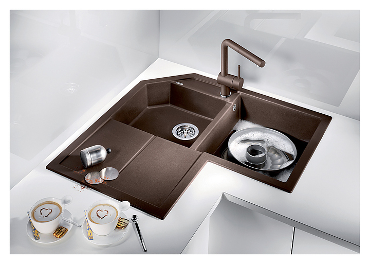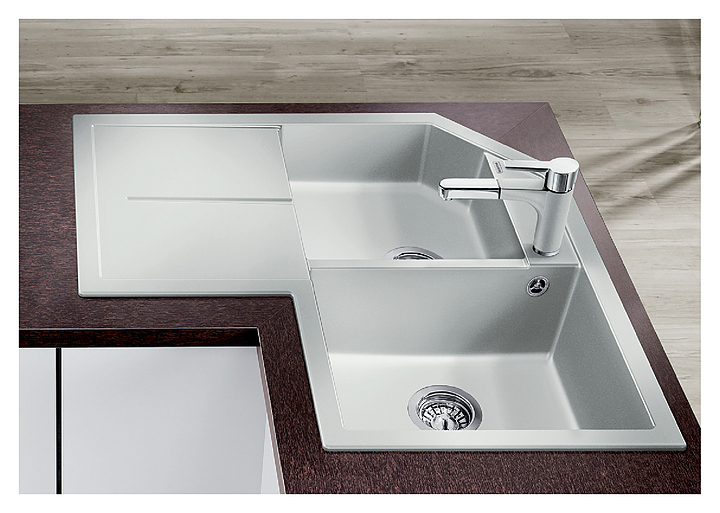 Мойка Blanco METRA 9Е SILGRANIT предназначена для рационального планирования рабочего места на кухне. Модель оснащена крылом и 2 чашами: основной и дополнительной. Основаная чаша большего размера расположена справа, а дополнительная чаша - по центру. Клапан-автомат организовывает автоматический отвод воды из чаши мойки. Корзинчатый вентиль, расположенный в сливном отверстии, выполняет функцию фильтра. Чаши имеют закругленные углы для облегчения процесса очищения их от загрязнений. Мойка изготовлена из гранита SILGRANIT PuraDur II. Дополнительные характеристики: