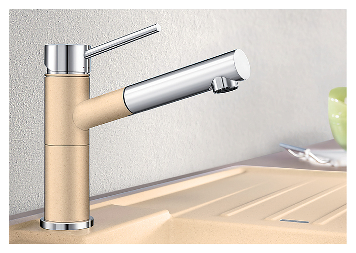 Компактный смеситель Blanco Alta-S Compact с особым эстетическим дизайном выполнен из натурального гранитного материала в сочетании с хромированной поверхностью. Он отлично гармонирует с небольшими мойками из гранита. Модель представлена в различных цветовых вариантах. Поворачивающийся излив цилиндрической формы позволяет без труда наполнять водой вазы или бутылки. Особая конструкция рассекателя предотвращает образование известкового налета. Особенности: