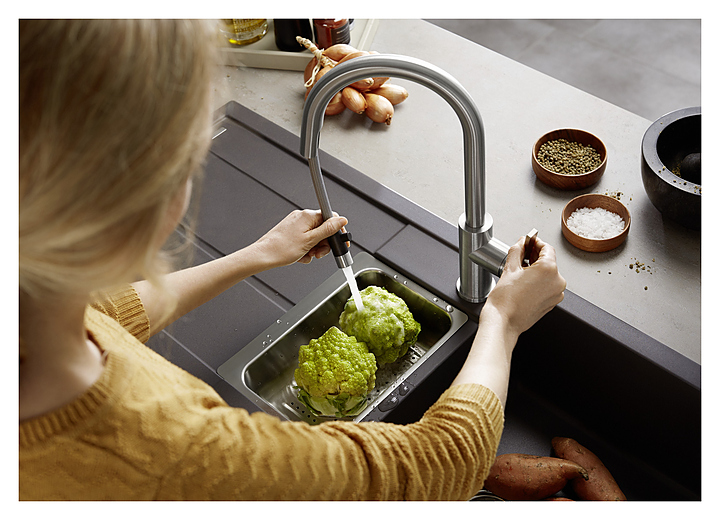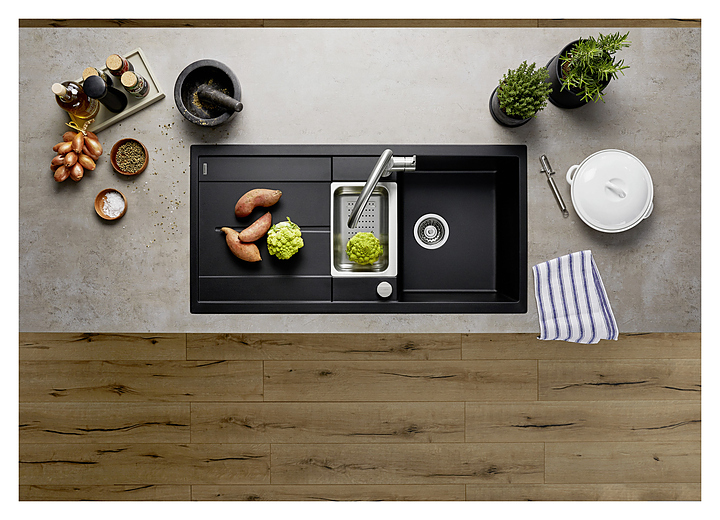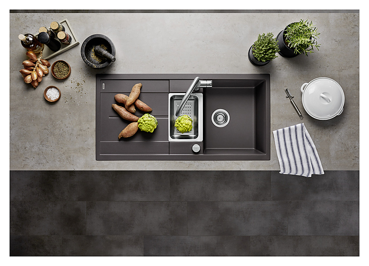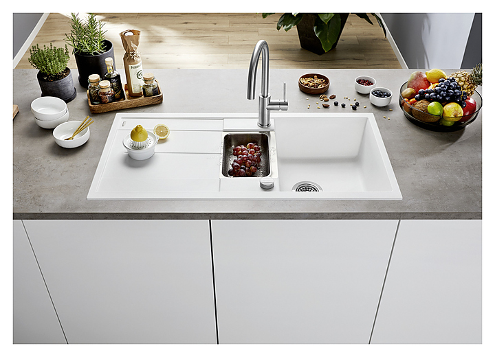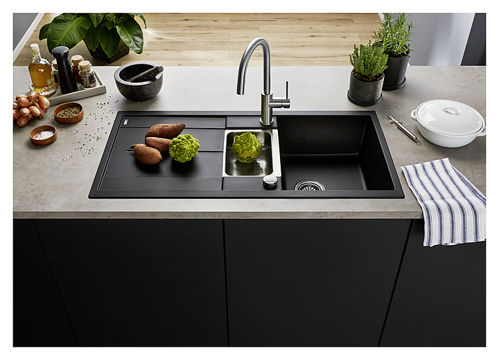 Мойка Blanco Metra 6 S предназначена для рационального планирования рабочего места на кухне. Чаша прямоугольной формы идеально сочетается с четкими формами дизайна. Оборачиваемость мойки позволяет при установке выбрать расположение крыла слева или справа. Коландер и клапан-автомат поставляются в комплекте с мойкой. В качестве хорошей альтернативы можно предложить модель Blanco Metra 6S Compact. Она значительно уже, имеет меньшее крыло, но обладает более вместительной дополнительной чашей. Однако стоит учитывать, что в комплекте с мойкой Blanco Metra 6S Compact поставляется только клапан-автомат. Дополнительные характеристики: