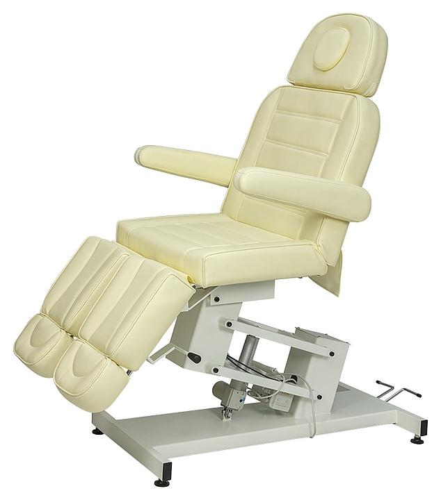 Педикюрное кресло Мэдисон&Co МД-834 предназначено для комфортного размещения клиента при проведения процедур маникюра, педикюра, спа-процедур, косметического и лечебного массажа в салонах красоты и косметологических центрах. Модель оснащена устойчивым основанием на подпятниках, электроприводом, удобным ложементом с мягкими сиденьем, спинкой, выдвижным подголовником с отверстием для лица и съемной подушкой, откидными подлокотниками, ножными подушками с выдвижными секциями для стоп и педалями регулировки. Обивка выполнена из качественной экокожи, каркас – из металла с антикоррозийным покрытием, наполнитель – эластичный пенополиуретан. В комплект поставки входит пульт управления. Особенности: