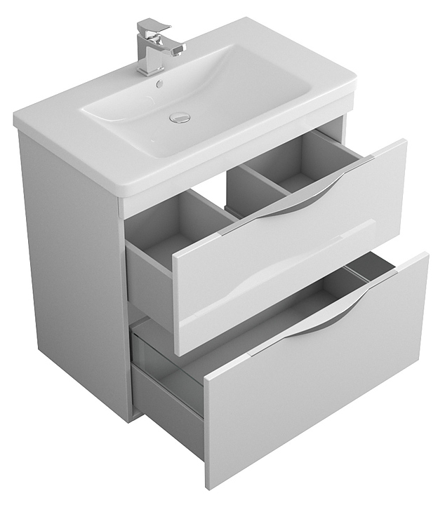Тумба подвесная под раковину OWL Sjel stor 80 OW25.12.00 выполнена в современном стиле и за счет своего элегантного дизайна легко впишется в любой интерьер. Модель оснащена 2 ящиками полного выдвижения с системой разделения пространства, где удобно хранить необходимые в ванной комнате личные принадлежности, аксессуары и элементы декора. Благодаря подвесной конструкции изделие не занимает много места и обеспечивает легкую уборку в ванной комнате. Корпус тумбы выполнен из ЛДСП, фасады - из высококачественной МДФ белого цвета, торцевые ручки - полированный алюминий. Тумба приобретается только в комплекте с раковиной Soft OWLB20-13080. Тумба является частью гарнитура для ванной комнаты Sjel stor 80. Особенности: