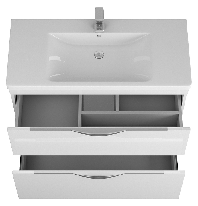 Тумба подвесная под раковину OWL Sjel stor 100 OW25.13.00 выполнена в современном стиле и за счет своего элегантного дизайна легко впишется в любой интерьер. Модель оснащена 2 ящиками полного выдвижения с системой разделения пространства, где удобно хранить необходимые в ванной комнате личные принадлежности, аксессуары и элементы декора. Благодаря подвесной конструкции изделие не занимает много места и обеспечивает легкую уборку в ванной комнате. Корпус тумбы выполнен из ЛДСП, фасады - из высококачественной МДФ белого цвета, торцевые ручки - полированный алюминий.