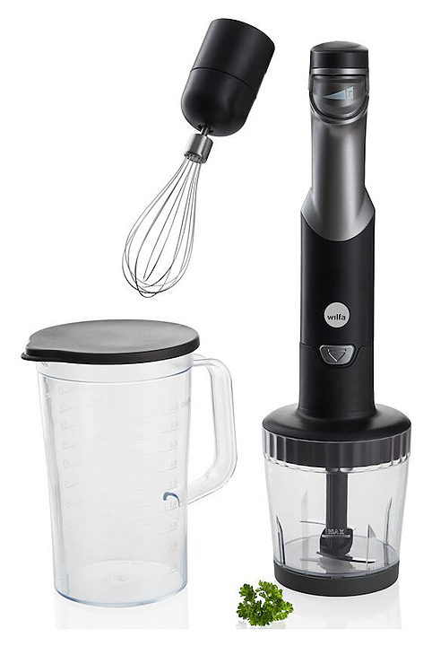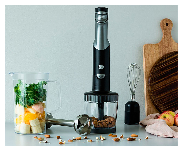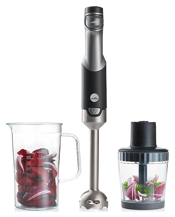 Блендер Wilfa SM-1000 FP предназначен для приготовления овощных пюре, смузи, зеленых коктейлей, муссов и кремов в частных домах, квартирах, отелях и офисах. Модель оснащена бесступенчатой регулировкой скорости и эргономичной ручкой с резиновым покрытием для удобного захвата. Корпус выполнен из пластика. В комплект поставки входят венчик для взбивания, емкость для взбивания с ручкой, мерной шкалой и крышкой и емкость для измельчения с лезвиями, крышкой и нескользящим основанием. Особенности:
