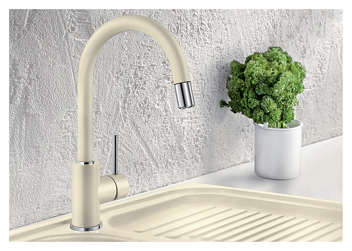 Смеситель Blanco Mida-S позволяет в сочетании с мойкой организовать удобное рабочее место на кухне. Запатентованный рассекатель служит для уменьшения отложений налета от воды, тем самым повышая срок эксплуатации. Модель выполнена в современном дизайне с покрытием Silgranit. Особености: