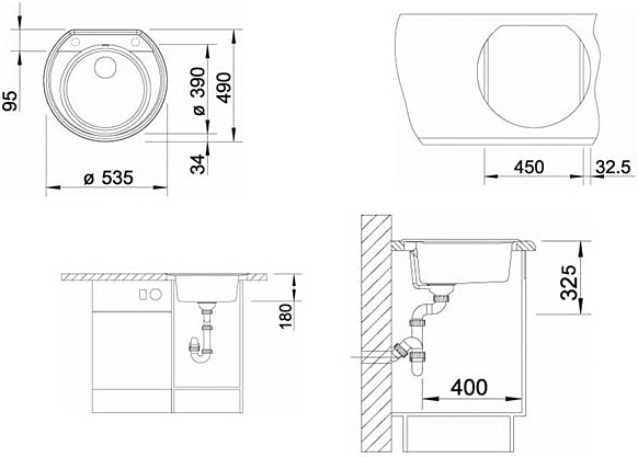 Круглая мойка Blanco Rondoval 45 с глубокой и вместительной чашей замечательно впишется в современный кухонный интерьер. В современном дизайне прямые линии удачно гармонируют с круглой чашей. В комплекте идет отводная арматура с корзинчатым вентилем, форма которого красиво вписывается в общий дизайн. Предусмотрено отверстие для перелива, установка которого позволит контролировать уровень воды в чаше и избежать переливов. Для расширения функциональных возможностей рабочего места можно использовать разделочную доску, которая будет накрывать чашу мойки. Дополнительные характеристики: