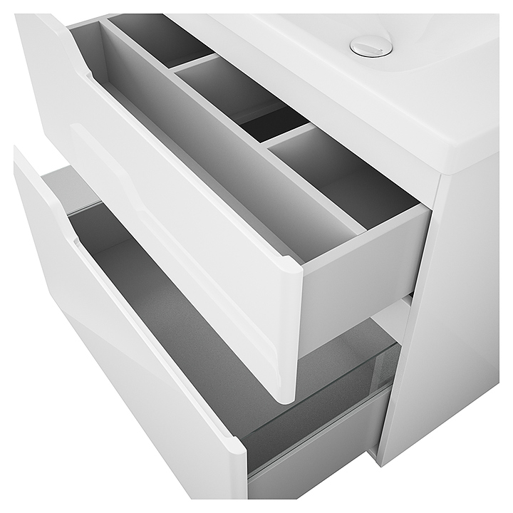 Тумба подвесная под раковину OWL Hella stor 80 OW24.12.00 выполнена в современном стиле и за счет своего элегантного дизайна легко впишется в любой интерьер. Модель оснащена 2 ящиками полного выдвижения с системой разделения пространства, где удобно хранить необходимые в ванной комнате личные принадлежности, аксессуары и элементы декора. Благодаря подвесной конструкции изделие не занимает много места и обеспечивает легкую уборку в ванной комнате. Корпус тумбы выполнен из ЛДСП, фасады - из высококачественной МДФ белого цвета. Тумба приобретается только в комплекте с раковиной Soft OWLB20-13080. Тумба является частью гарнитура для ванной комнаты Hella stor 80. Особенности: