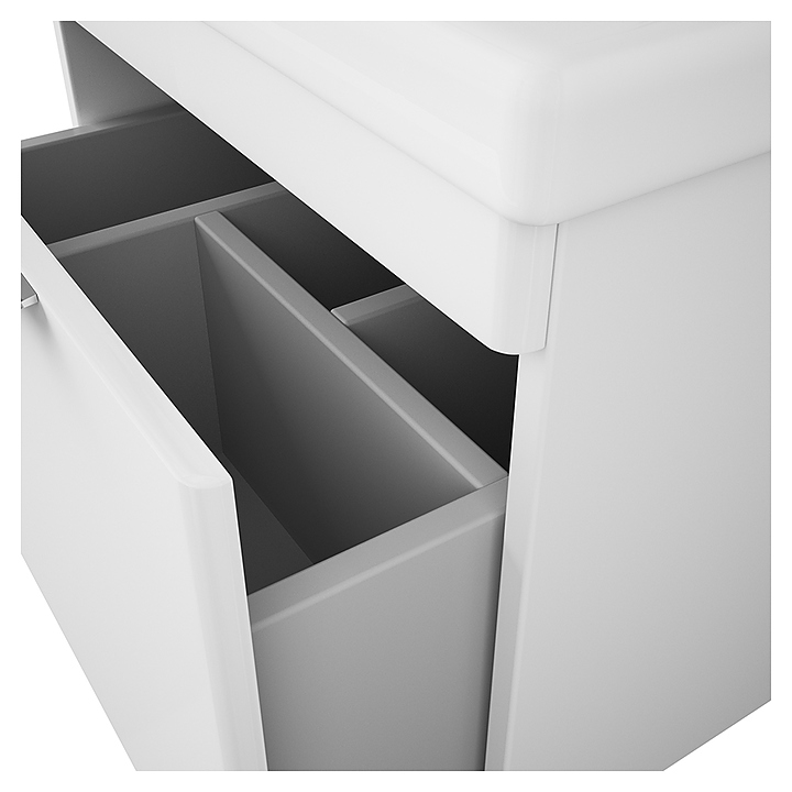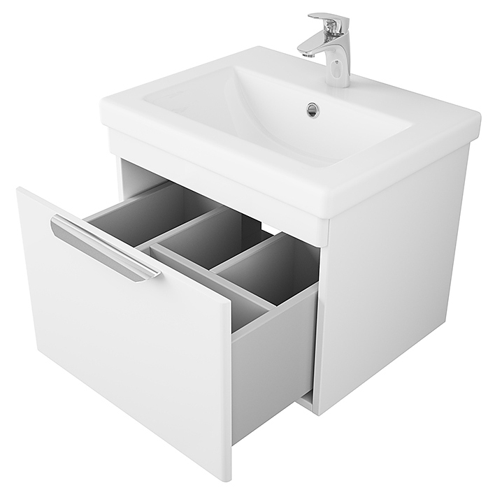 Гарнитур OWL Vind 50 выполнен в современном стиле. Комплект состоит из тумбы под раковину Vind 50 OW23.02.00, раковины Cersanit COMO 50 UM-COM50/1, зеркальный шкаф Vind 50 OW23.20.00, полупенала Vind 30 OW23.08.00, пенала Vind 30 OW23.06.00 и комплект опор OW99.00.01. Тумба оснащена ящиком полного выдвижения с системой разделения пространства, раковина имеет слив-перелив и отверстие для смесителя по центру, пенал - распашные фасад-дверцы со стеклянными полками внутри. Благодаря подвесной конструкции изделие не занимает много места и обеспечивает легкую уборку в ванной комнате. Корпус мебели выполнен из ЛДСП, фасады - высококачественной МДФ белого цвета, раковина - из санфарфора, который обладает повышенной прочностью и устойчивостью к негативным внешним факторам, а так же способен долгое время сохранять идеальную белизну. Особенности: