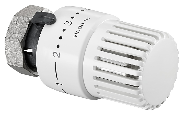 Термостат Oventrop Vindo TH 1013066 используется в комбинации с термостатическими вентилями для автоматического поддержания заданной температуры в помещении посредством изменения расхода теплоносителя на конечных узлах, таких как радиаторы, внутрипольные конвекторы и приборы панельного отопления и охлаждения. Модель оснащена сильфоном с жидкостным чувствительным элементом, резьбовой накидной гайкой, декоративным кольцом и цифровой шкалой настройки из 5 значений с промежуточными делениями. Накидная гайка выполнена из латуни с никелированным покрытием, маховик – из белого (RAL 9016) пластика. Производители совместимых встроенных вентильных гарнитур: ARA, Arbonia, Caradon-Stelrad, Cetra, Concept, Dekatherm, Delta, Demrad, DiaNorm, Dia-therm, Dunaferr, DURA, Ferroli, Hagetec, Henrad, HM-Galant, Itemar/Biasi, Kaitherm, Kermi, Korado, Manaut, Purmo, Radson, Rettig, Starpan, Superia, VEHA, VSZ-Korad, Zehnder, Zehnder-Runtal, Zenith и другие. Особенности: