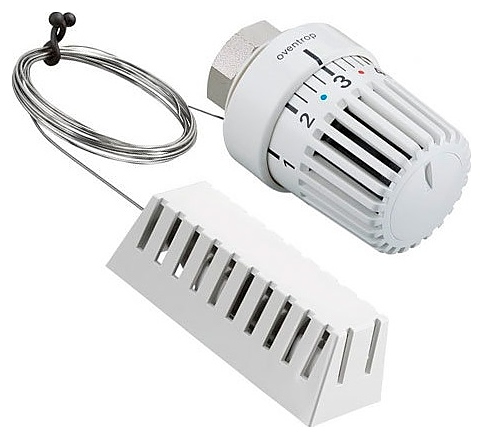 Термостат Oventrop Uni LH 1011682 используется в комбинации с термостатическими вентилями для автоматического поддержания заданной температуры в помещении посредством изменения расхода теплоносителя на конечных узлах, таких как радиаторы, внутрипольные конвекторы и приборы панельного отопления и охлаждения. Модель оснащена выносным датчиком, сильфоном с жидкостным чувствительным элементом, капиллярной трубкой, резьбовой накидной гайкой, маховиком с мемо-шайбой и цифровой шкалой настройки из 5 значений с промежуточными делениями. Накидная гайка выполнена из латуни с никелированным покрытием, маховик – из белого (RAL 9016) прочного пластика. Производители совместимых встроенных вентильных гарнитур: ACOVA, Alarko, Aluplan, Arbonia, Baufa, Bemm, Borer, Bremo, Caradon- Stelrad, Cetra, Coskunoz, Concept, Dekatherm, DEF, Delta, Demrad, DiaNorm, Dia-therm, Dunaferr, DURA, Ferroli, Gerhard + Rauh, Heatline, Henrad, HM- Heizkorper, Hoval, IMAS, Itemar/Biasi, Jaga, JOCO, Kaitherm, Kalor, Kermi, Korado, Lembacher, Manaut, Merriott, Neria, Purmo, Radson, Rettig, Runtal, Starpan, Stelrad, Superia, Univa, US-Steel, Vasco, VEHA, Winkels, Zehnder, Zenith и другие. Особенности:
