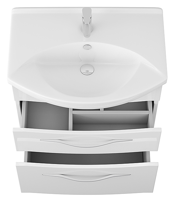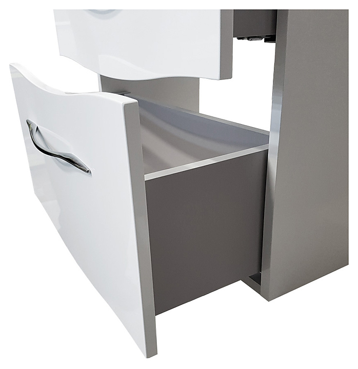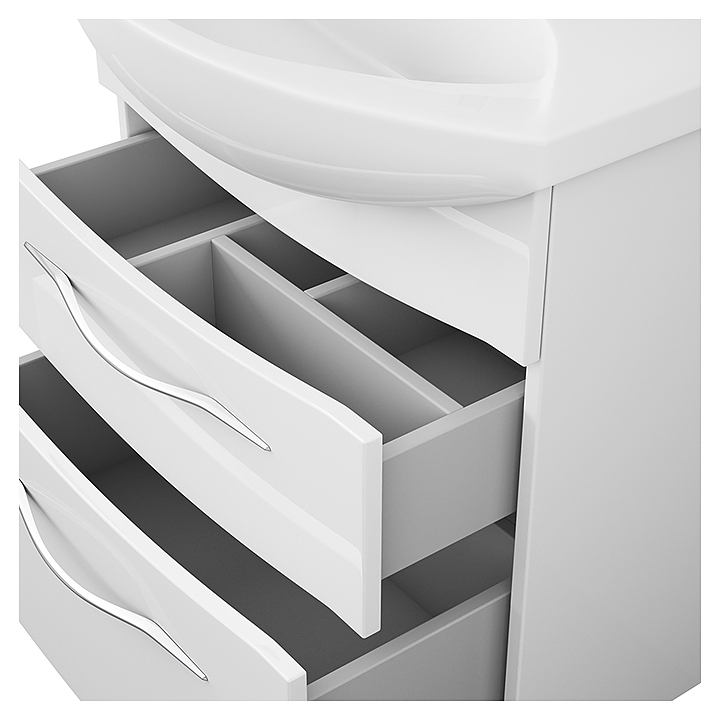 Тумба подвесная под раковину OWL Vessla stor 65 OW22.11.00 выполнена в современном стиле и за счет своего элегантного дизайна легко впишется в любой интерьер. Модель оснащена 2 ящиками полного выдвижения с системой разделения пространства, где удобно хранить необходимые в ванной комнате личные принадлежности, аксессуары и элементы декора. Благодаря подвесной конструкции изделие не занимает много места и обеспечивает легкую уборку в ванной комнате. Корпус тумбы выполнен из ЛДСП, фасады - из высококачественной МДФ белого цвета, ручки - хромированная латунь. Тумба приобретается только в комплекте с раковиной Dreja Laguna 65 192529. Тумба является частью гарнитура для ванной комнаты Vessla stor 65. Особенности: