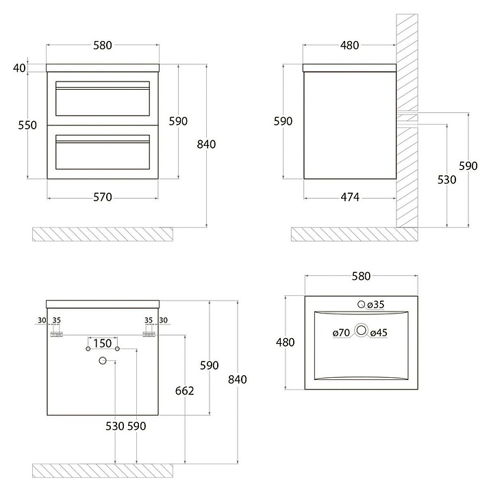 Тумба под раковину Art&Max AM-Platino-580-2C-SO-BM выполнена в современном стиле и прекрасно впишется в интерьер любой ванной комнаты. Благодаря подвесной конструкции изделие не занимает много места, позволяет экономить пространство и облегчает уборку. Модель оснащена двумя выдвижными ящиками с доводчиками. Фасад изделия выполнен из МДФ. Тумба может использоваться вместе с раковиной AM-LAV-580-MR-A. Раковина и смеситель в комплект поставки не входят и приобретаются отдельно. Особенности: