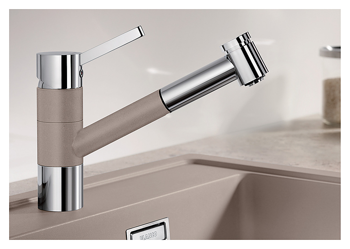 Смеситель Blanco Tivo-S предлагается в комбинации инновационного материала Silgranit с хромированными элементами. Он прекрасно сочетается с современными моделями моек Classiс Pro и Zia. Высокий поворотный излив с расширенным радиусом действия обеспечивает высокую функциональность и облегчает работу на кухне. Функция переключения позволяет использовать смеситель в двух режимах: струя и душ. Выдвижной излив увеличивает функциональность и создает комфортные условия для эксплуатации. Благодаря специальной конструкции рассекателя не образовывается налет от воды. Особенности:
