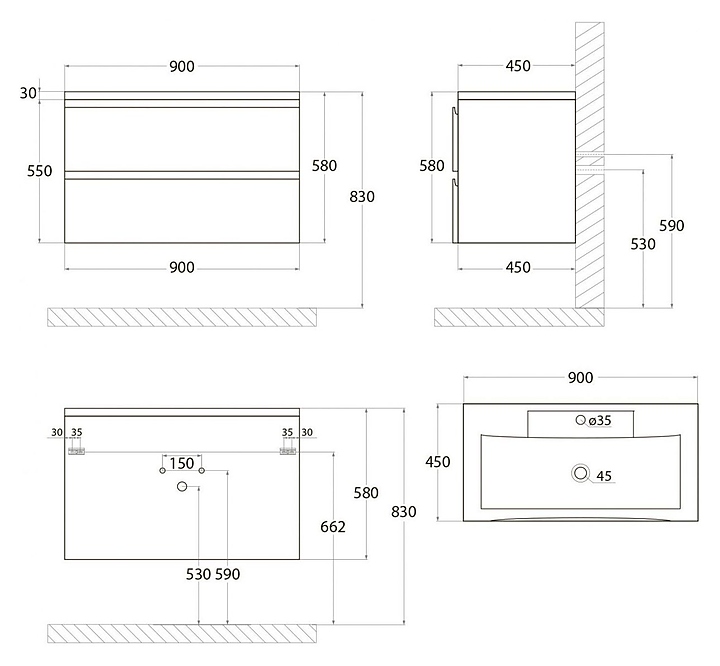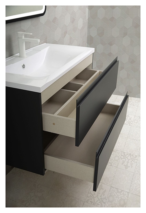 Тумба под раковину Art&Max AM-Bianchi-900-2C-SO-GM выполнена в современном стиле и прекрасно впишется в интерьер любой ванной комнаты. Благодаря подвесной конструкции изделие не занимает много места, позволяет экономить пространство и облегчает уборку. Модель оснащена двумя выдвижными ящиками с направляющими скрытого монтажа с доводчиками. Фасад изделия выполнен из МДФ. Тумба может использоваться вместе с раковиной AM-LAV-900-MR-FP. Раковина и смеситель в комплект поставки не входят и приобретаются отдельно. Особенности: