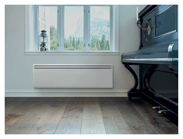 Настенный конвектор NOBO Nordic NFK 4W 20 предназначен для отопления помещений в частных домах и квартирах, отелях и офисах. Модель оснащена электронным термостатом с ручным управлением. Передняя панель гладкая, с закругленными углами и слабо нагревающаяся, что обеспечивает безопасность для людей. В комплект поставки входит кронштейн для крепления на стену. Особенности: