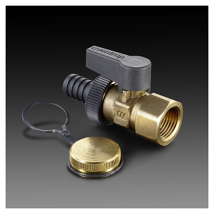 Кран шаровой Oventrop Optiflex KFE 1033814, ДУ 15, PN 16, Rp 1/2" (ВР), со штуцером для шланга и колпачком, латунь