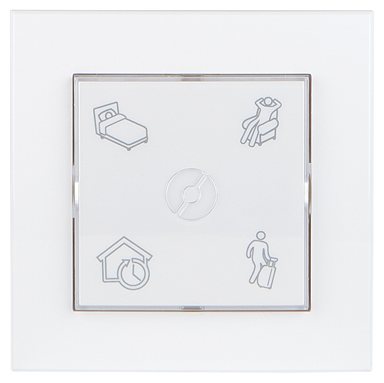 Беспроводной переключатель режимов NOBO EcoSwitch является компонентом системы управления Nobo Energy Control, используется для управления всеми приемниками и термостатами со встроенным датчиком температуры. Модель оснащена 4 элементами управления, соответствующим 4 режимам работы, при нажатии на один из которых все связанные приемники и термостаты переходят в указанный режим. Особенности: