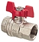 Полнопроходной шаровой кран Oventrop Optibal 1076110 используется в качестве запорной арматуры в промышленных и бытовых системах отопления и водоснабжения. Модель оснащена 2 резьбовыми патрубками, штоком с необслуживаемым двойным уплотнением и рукояткой-бабочкой. Корпус, шток и шар выполнены из высококачественной, стойкой к обесцинкиванию латуни (DZR), гайка и шайба – из оцинкованной стали, рукоятка – из алюминия с покрытием красной порошковой краской, уплотнение шара – из политетрафторэтилена (PTFE), уплотненительные кольца штока – из фтористого каучука Viton (FPM/FKM), двухкомпонентный корпус с никелированным покрытием, шар с хромированным покрытием. Особенности: