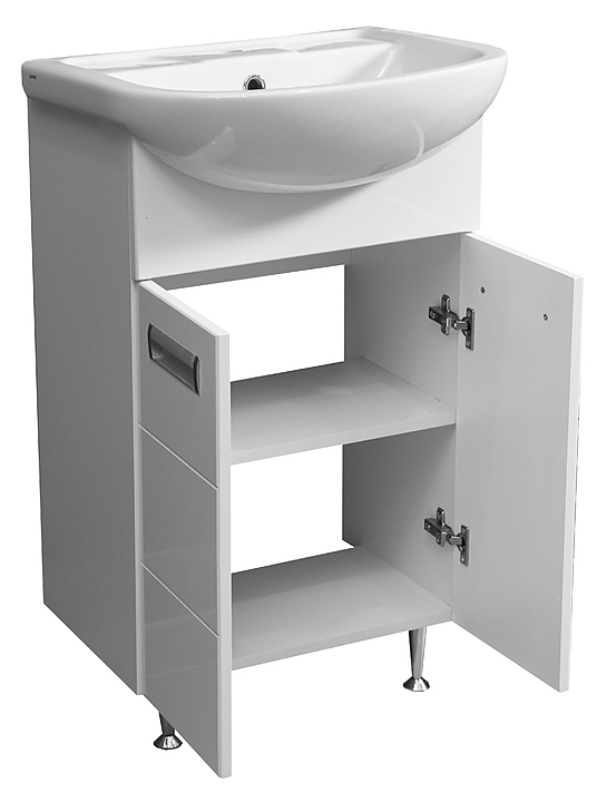 Тумба Stella Polar Фиора 55 SP-00000212 выполнена в современном, лаконичном стиле и отлично дополнит интерьер любой ванной комнаты. Модель оснащена распашными фасад-дверцами с полкой внутри, где удобно разместить все необходимые личные принадлежности и элементы декора, раковина имеет слив-перелив и отверстие для смесителя по центру. Напольная конструкция обеспечивает легкий монтаж и не требует специального ремонта в помещении. Изделие выполнено из влагостойкого ЛДСП премиум-класса "Lamarty", что обеспечивает превосходный внешний вид и значительно увеличивает срок эксплуатации. Тумба приобретается только в комплекте с раковиной Rosa Уют 55 SD-00000065. Тумба с раковиной может использоваться в составе гарнитура Фиора 55. Особенности:
