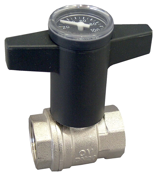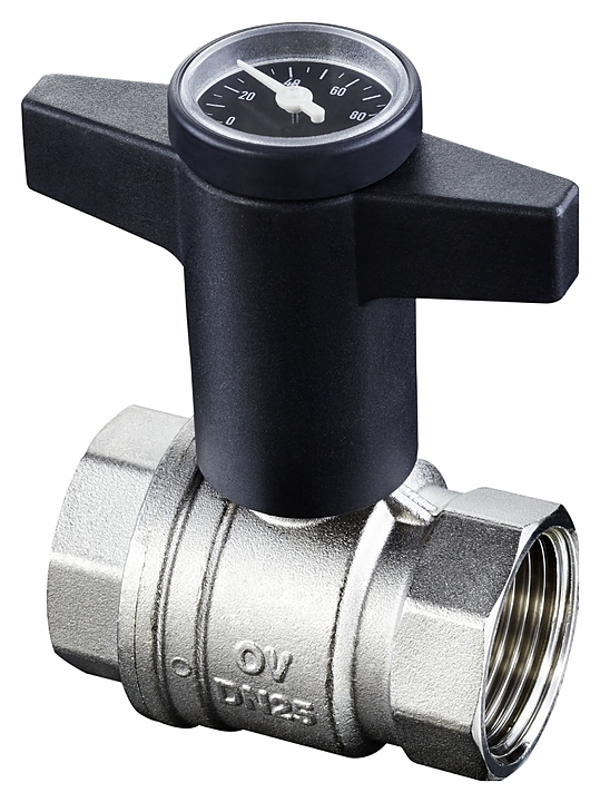 Полнопроходной шаровой кран Oventrop Optibal 1078012 используется в качестве запорной арматуры в промышленных и бытовых системах отопления и водоснабжения. Модель оснащена 2 резьбовыми патрубками, штоком с необслуживаемым двойным уплотнением и Т-образной рукояткой с термометром. Двухкомпонентный корпус, шар и шток выполнены из высококачественной латуни, винт и шайба – из оцинкованной стали, рукоятка – из прочного черного пластика, уплотнение шара – из политетрафторэтилена (PTFE) средней жесткости, уплотненительные кольца штока – из фтористого каучука (FPM/FKM), шар с хромированным покрытием. Особенности: