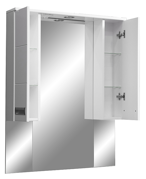 Зеркало Stella Polar Фиора 80/С SP-00000210 выполнено в современном и лаконичном стиле и отлично дополнит интерьер любой ванной комнаты. Модель оснащена подсветкой и шкафчиками с двух сторон. Благодаря подвесной конструкции модель не занимает много места, что позволяет экономить пространство в небольшой ванной комнате, а также облегчает уборку. Изделие выполнено из влагостойкого ЛДСП премиум-класса "Lamarty", что обеспечивает превосходный внешний вид и значительно увеличивает срок эксплуатации. Для установки понадобится набор крепежей для монтажа на стену. Зеркало может использоваться в составе гарнитура Фиора 80. Особенности:
