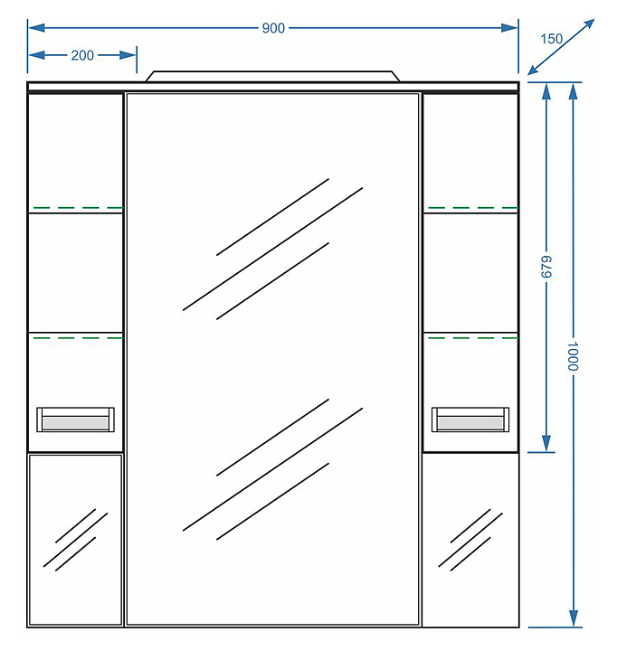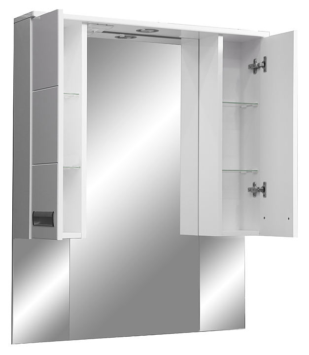 Зеркало Stella Polar Фиора 90/С SP-00000211 выполнено в современном и лаконичном стиле и отлично дополнит интерьер любой ванной комнаты. Модель оснащена подсветкой и шкафчиками с двух сторон. Благодаря подвесной конструкции модель не занимает много места, что позволяет экономить пространство в небольшой ванной комнате, а также облегчает уборку. Изделие выполнено из влагостойкого ЛДСП премиум-класса "Lamarty", что обеспечивает превосходный внешний вид и значительно увеличивает срок эксплуатации. Для установки понадобится набор крепежей для монтажа на стену. Зеркало может использоваться в составе гарнитура Фиора 90. Особенности:
