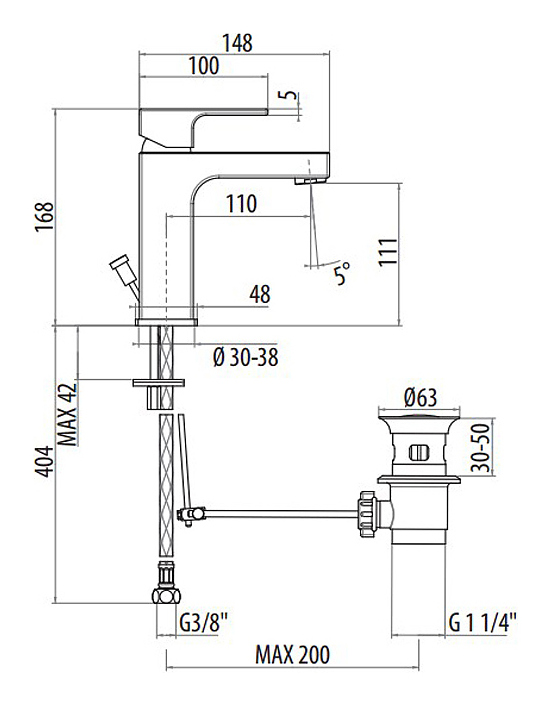 Смеситель для раковины Gattoni Kubik 2541/25C0
