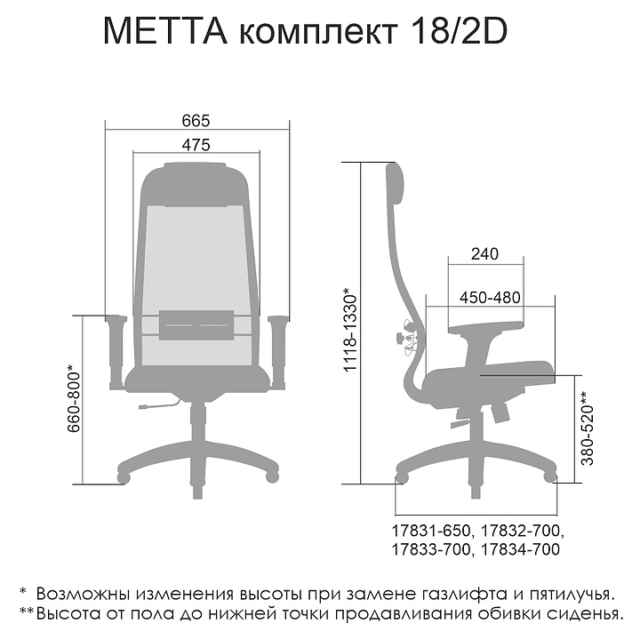 Кресло Метта Комплект 18/2D предназначено для долгой работы за компьютером на даче, дома, а также в офисах. Модель оснащена высокой замкнутой сверху спинкой с мягким накладным подголовником и мягким комфортным натяжным сиденьем. Сверхпрочный каркас кресла и регулируемый поясничный подпор изготовлены из стали с износостойким полимерным покрытием черного цвета, обивка - из износостойкой обивочной сетчатой ткани. Пятилучье в комплект поставки не входит и приобретается отдельно. Особенности: