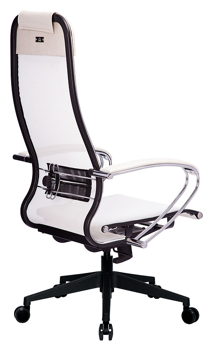 Кресло Метта Комплект 4 предназначено для долгой работы за компьютером на даче, дома, а также в офисах. Модель оснащена высокой замкнутой сверху спинкой с мягким накладным подголовником и мягким комфортным натяжным сиденьем. Сверхпрочный каркас кресла и регулируемый поясничный подпор изготовлены из стали с износостойким полимерным покрытием черного цвета и хромированным молдингом, обивка - из сетчатой ткани. Пятилучье в комплект поставки не входит и приобретается отдельно. Особенности: